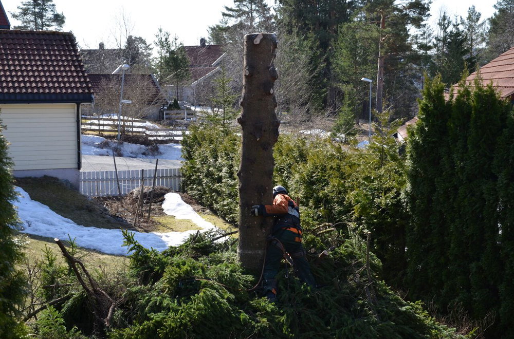 Akrobat har erfarne og sertifiserte trefellere / arborister som utfører tomterydding, trefelling, trepleie og flishugging. Alt i profesjonell felling og beskjæring. Seksjons felling av trær over hustak, inntil ledninger (linjerydding), trasse rydding av veier og tomterydding.